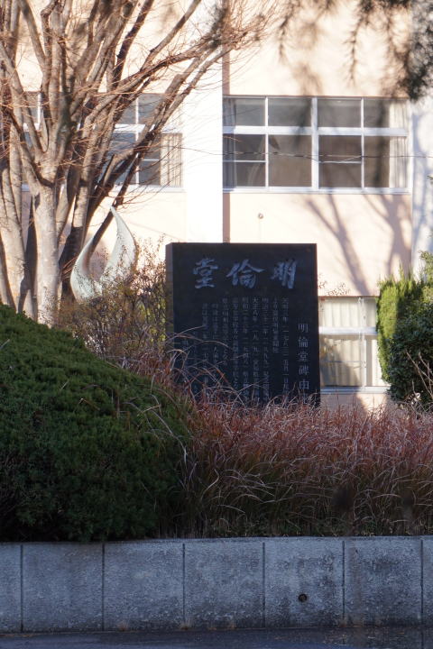 尾張藩校 明倫堂の伝統と名を受け継いだ愛知県立明和高等学校敷地内に碑が建てられている。