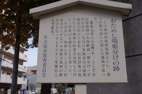 嘉永7年(1854年)冬、ここで名古屋最初の人体解剖(腑分け)が行われた。