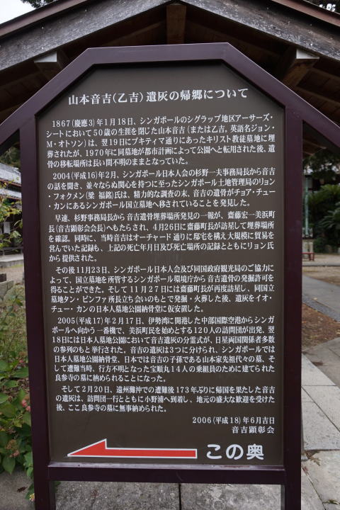 山本音吉の墓が平成16年(2004年)シンガポールで再発見され、平成17年(2005年)遺骨の一部が良参寺の墓に納められた。