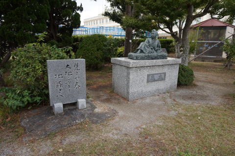 小学校の門内には渡辺崋山 立志の像が建てられている。